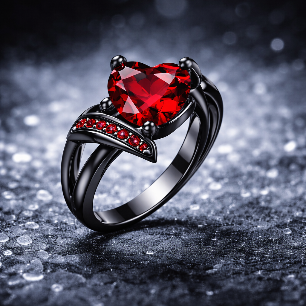 Rose Gold & Black Heart Promise Ring Set